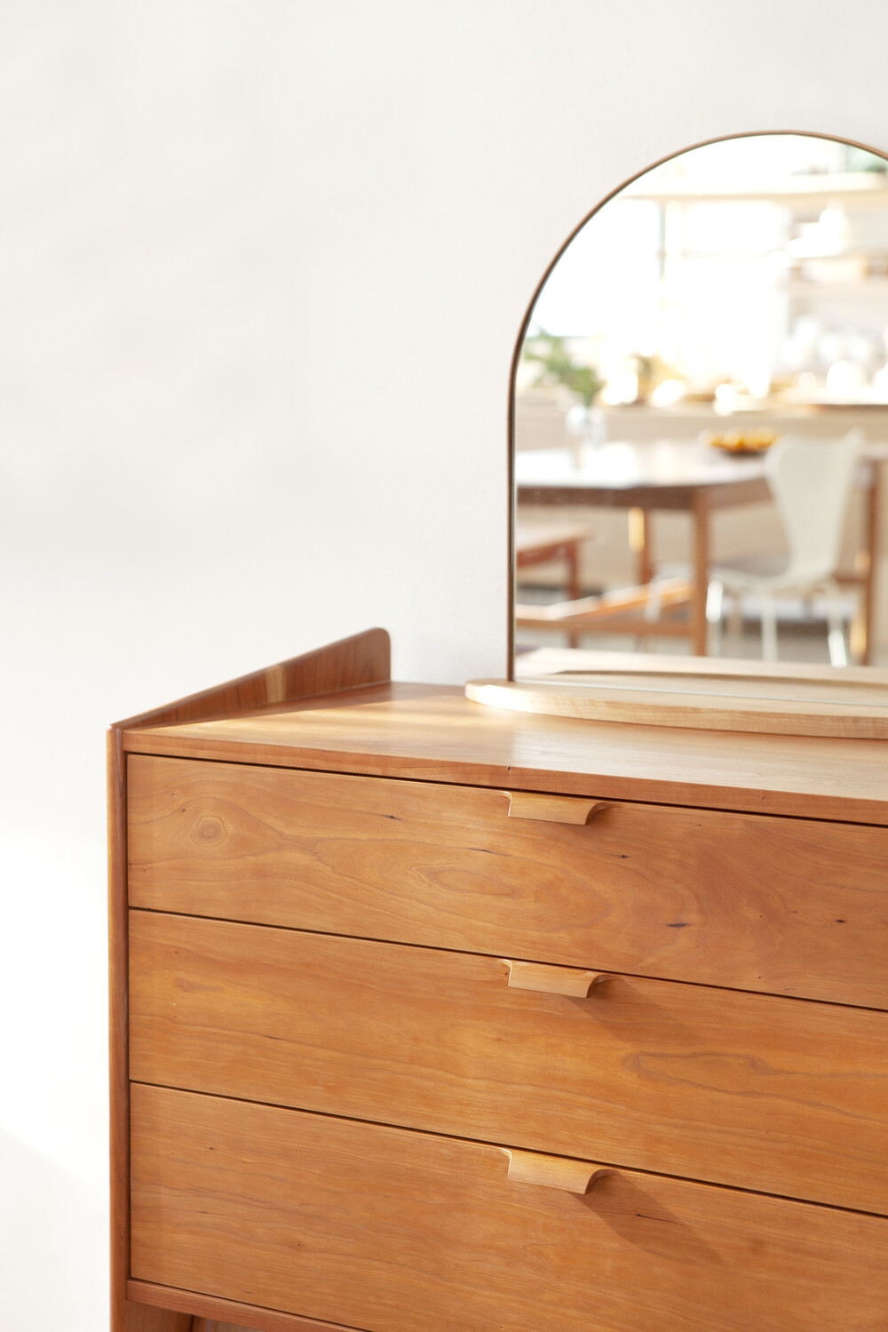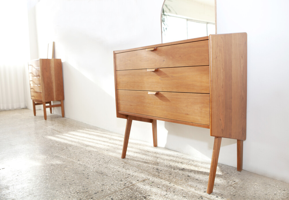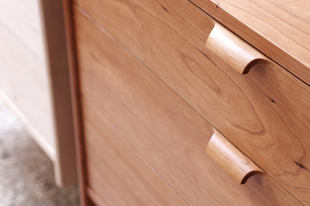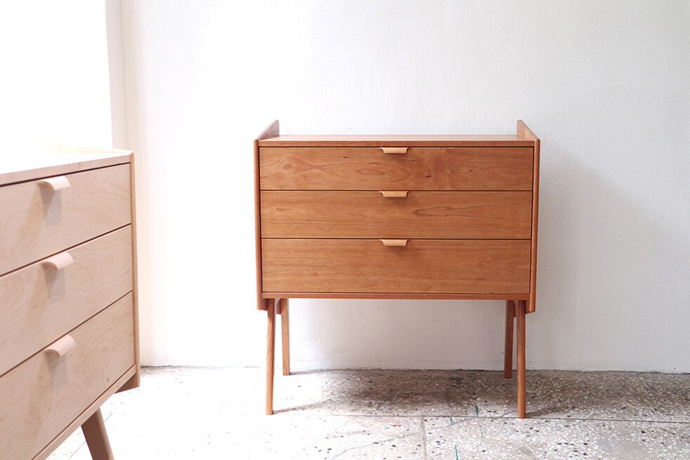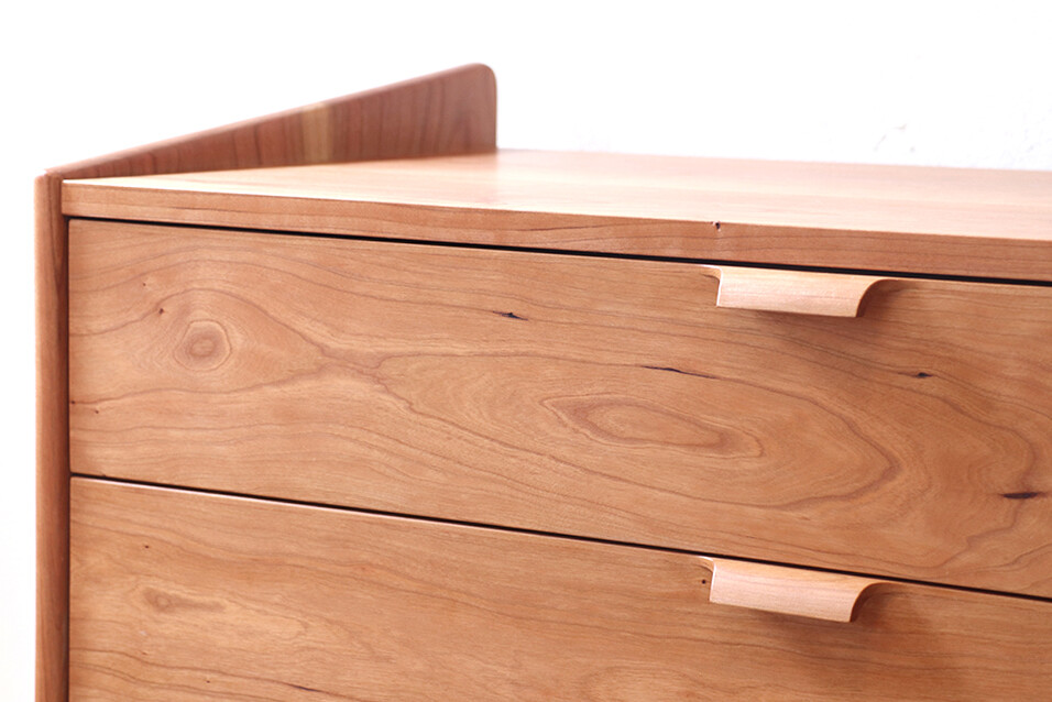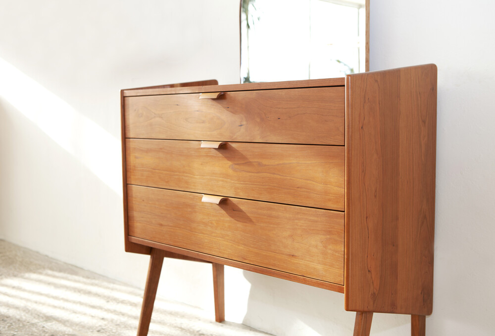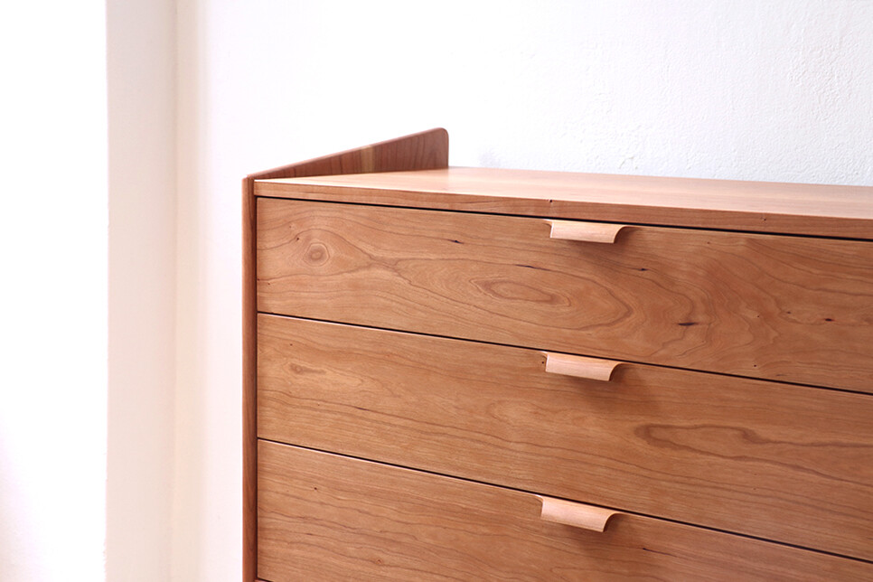자연광 + 체리로 제작된 서랍장이 시간이 흐르면서 에이징된 색감입니다.