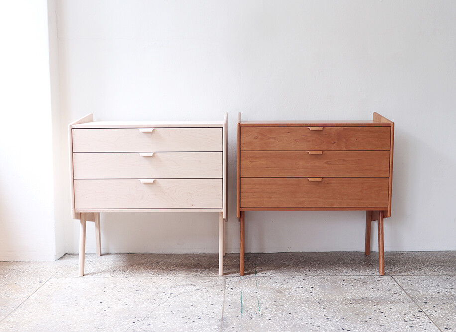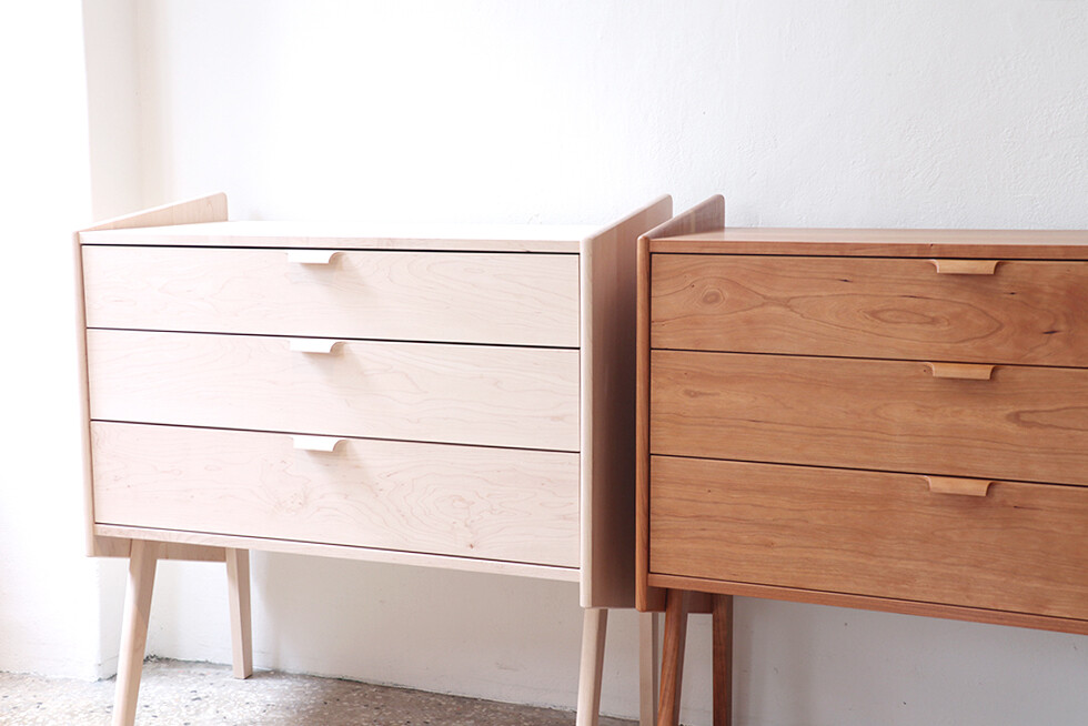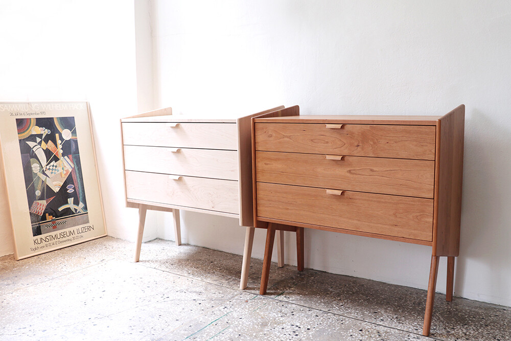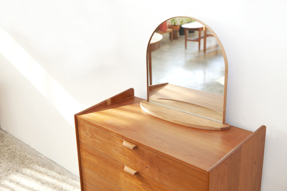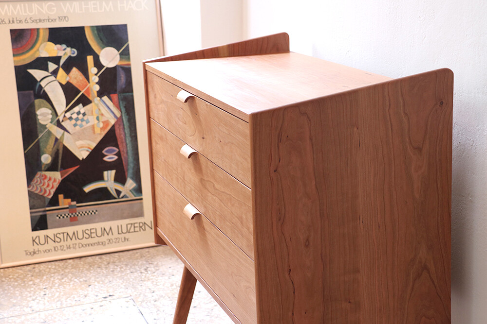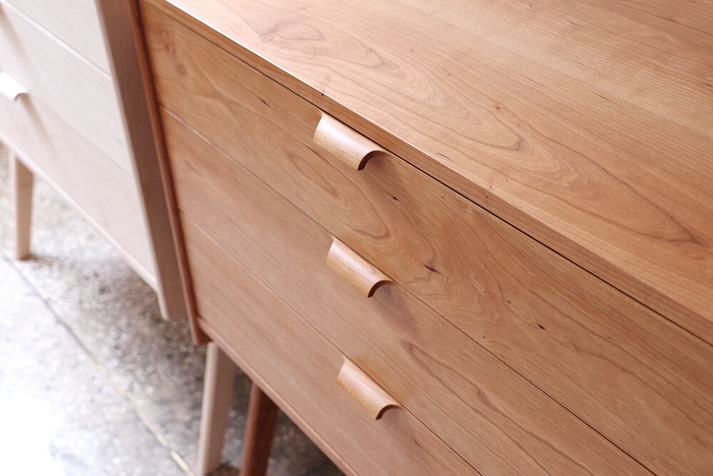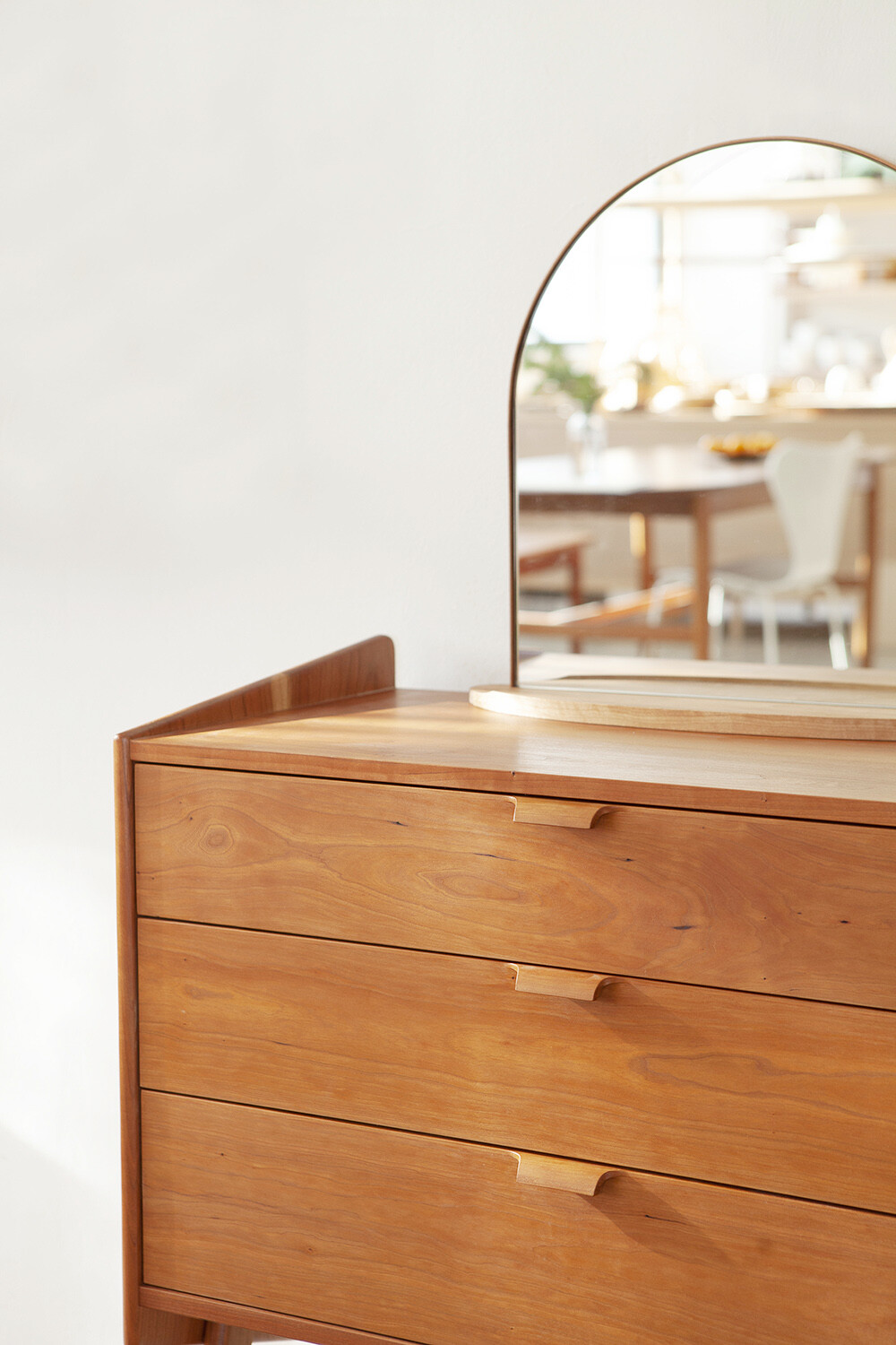 자연광 + 체리로 제작된 서랍장이 시간이 흐르면서 에이징된 색감입니다.