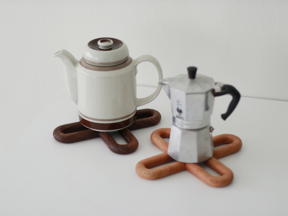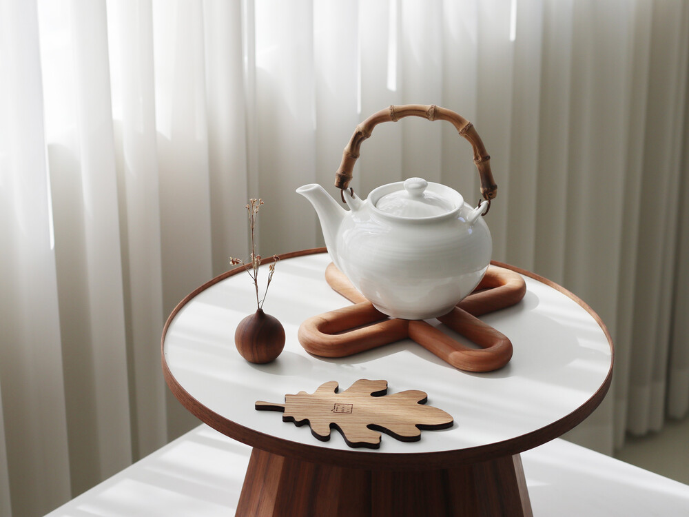 부드러운 곡선이 돋보이는 원목냄비받침으로