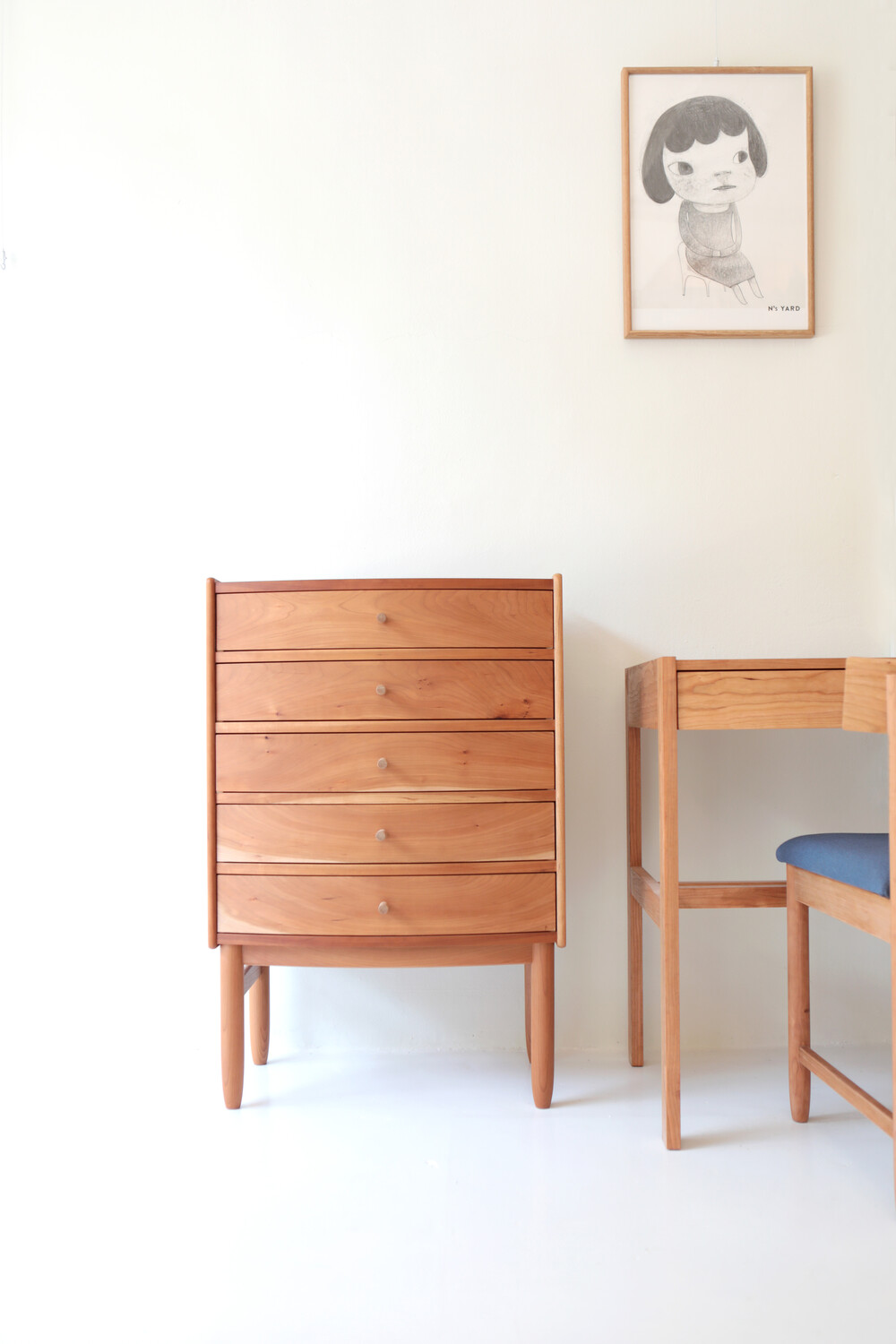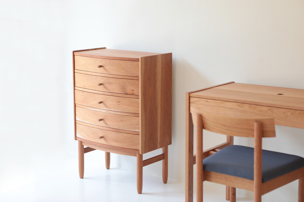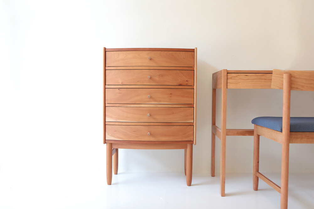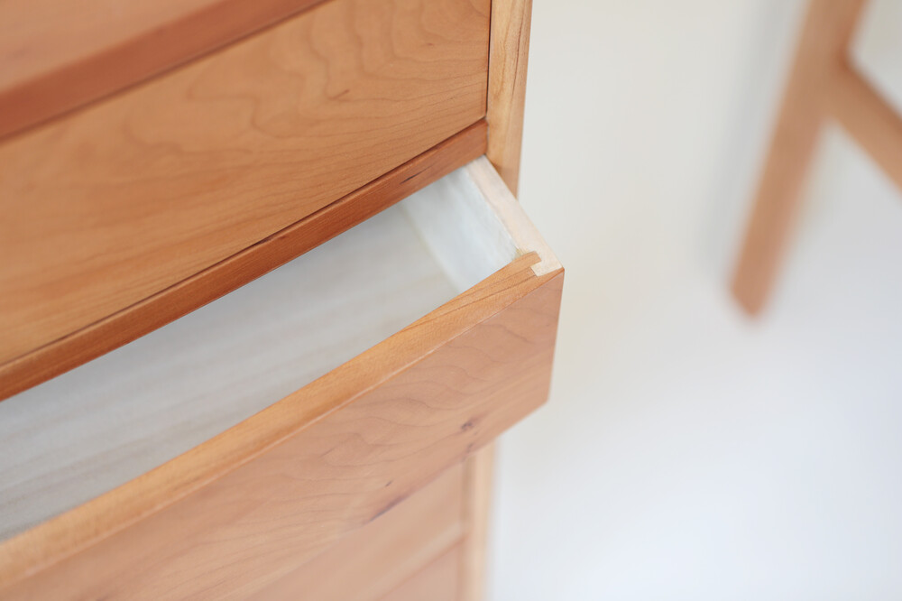자연광 + 체리로 제작된 서랍장이 시간이 흐르면서 에이징된 색감입니다.