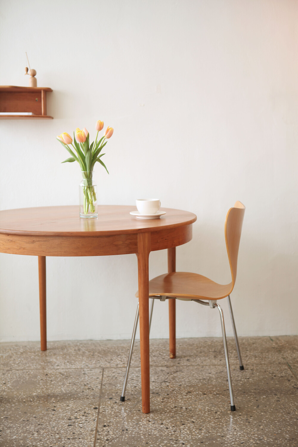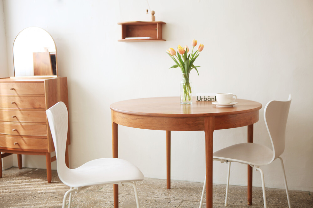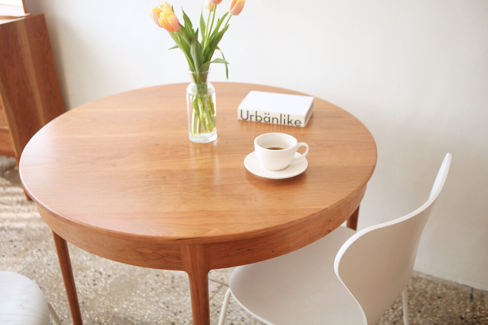 따뜻한 분위기를 물씬 풍기는 라운드 테이블입니다.