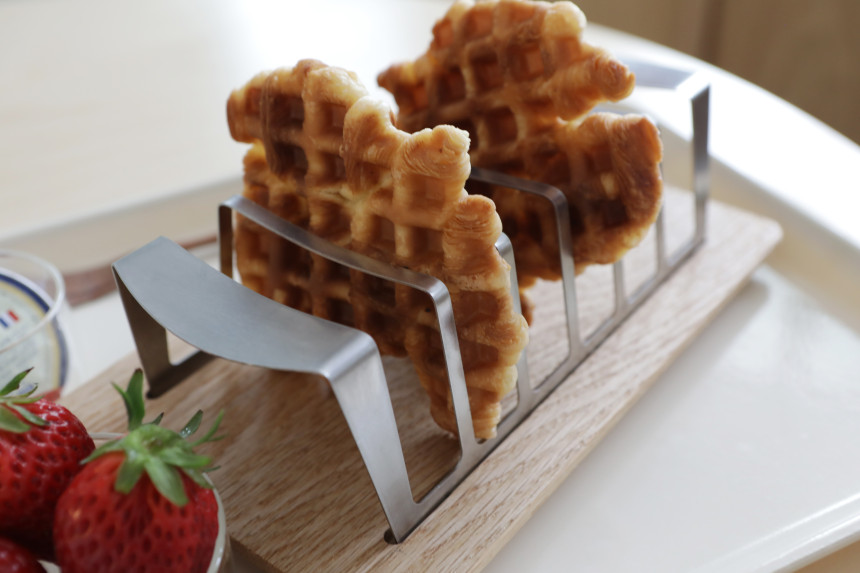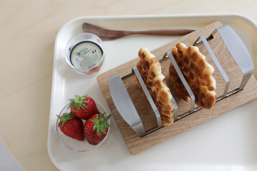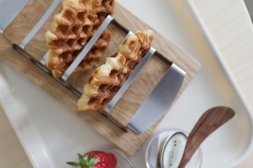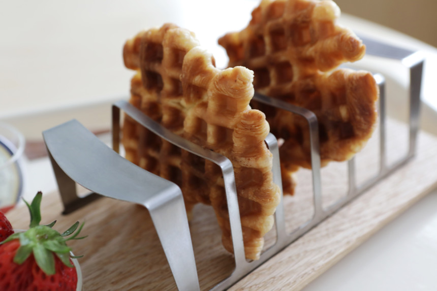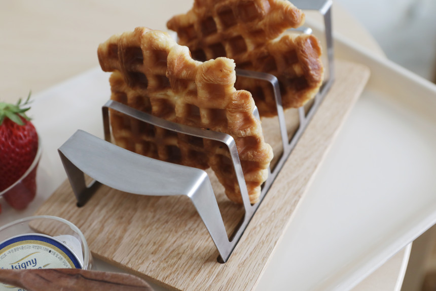 식빵이나 크로플 등이 눅눅하지 않게 세워서 거치하는 토스트랙으로
