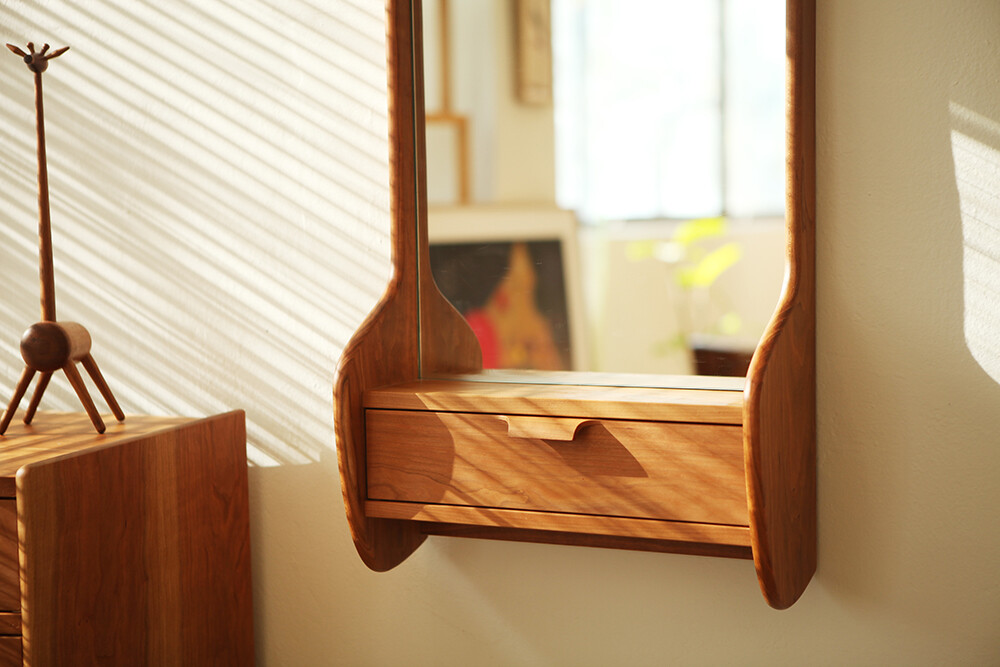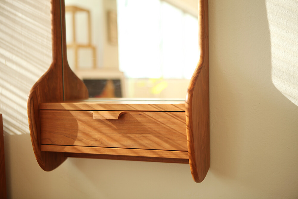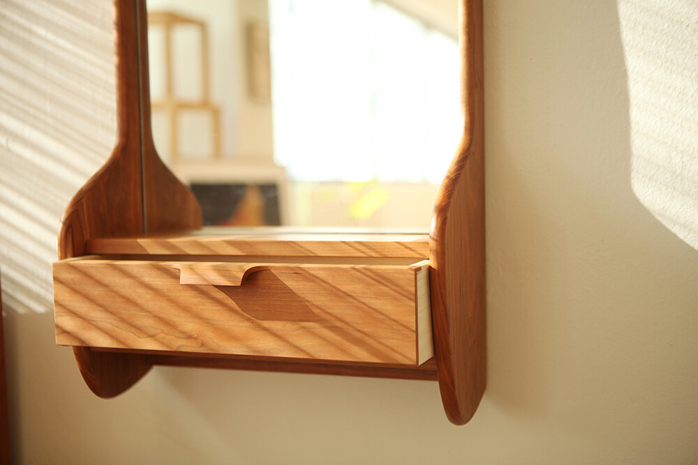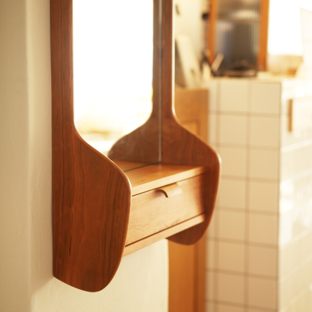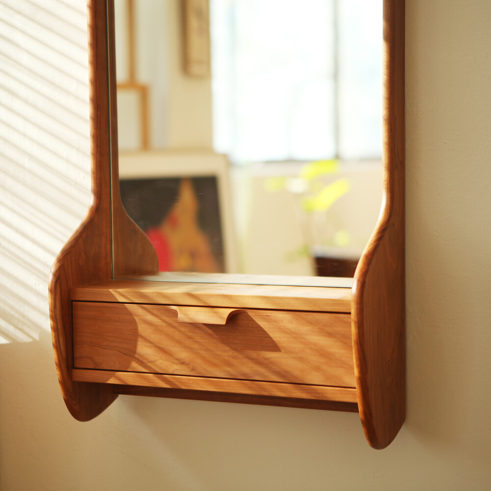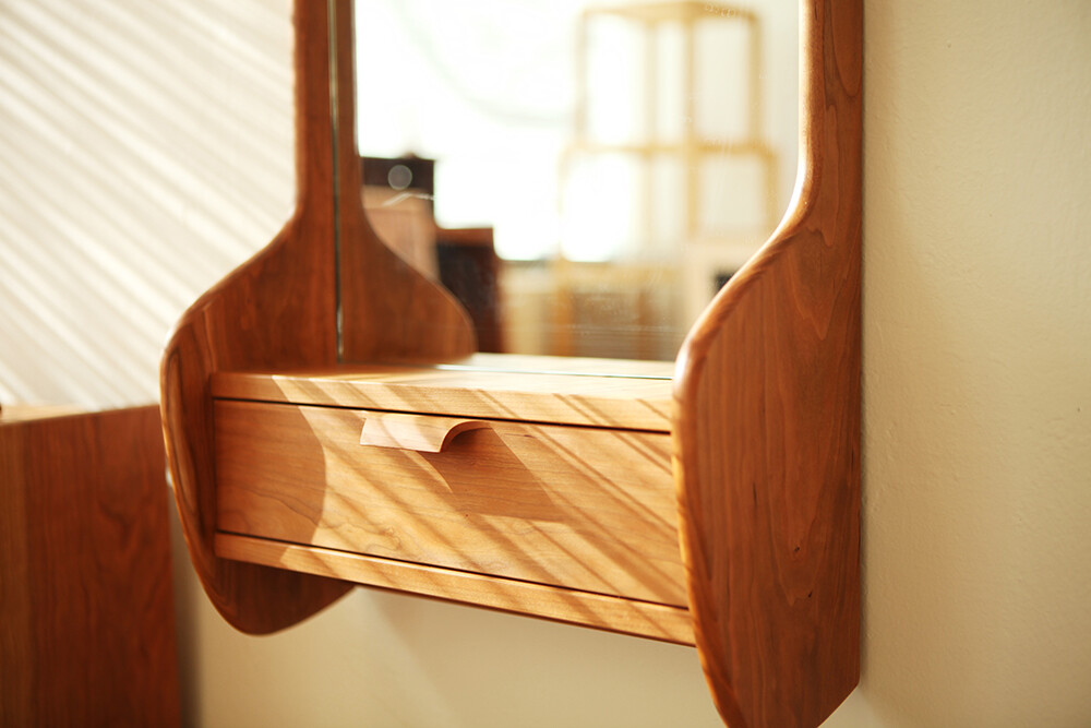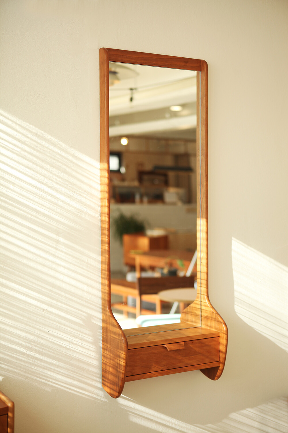 빈티지하면서도 유연한 디자인이 매력적인 벽걸이 화장대입니다.