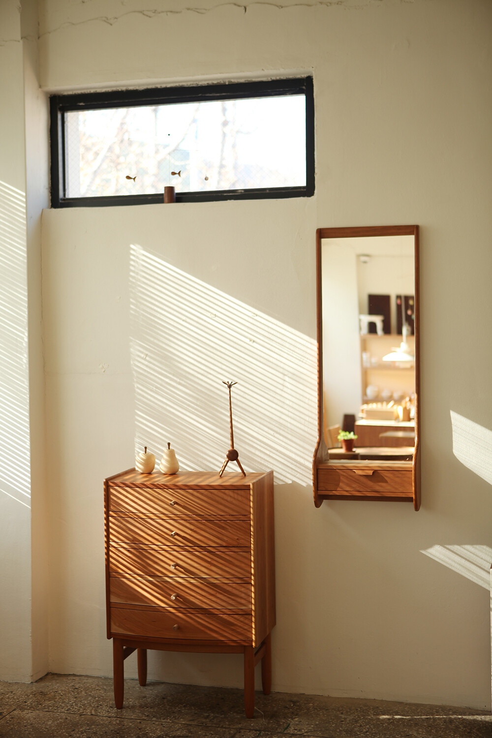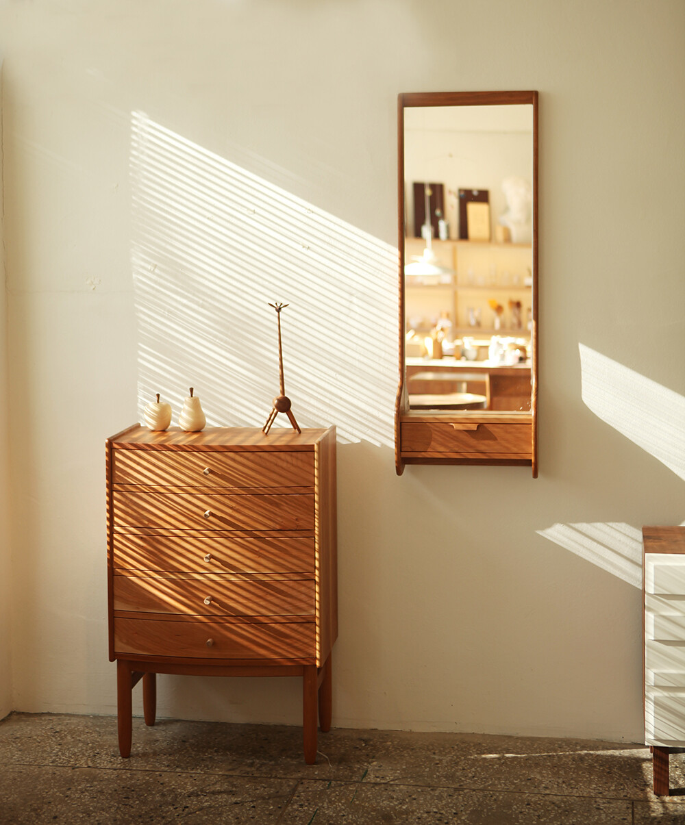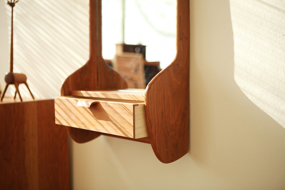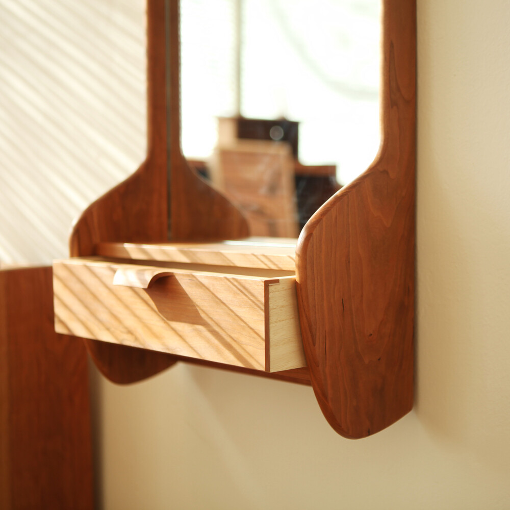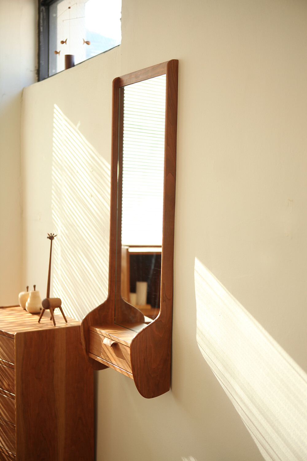빈티지하면서도 유연한 디자인이 매력적인 벽걸이 화장대입니다.