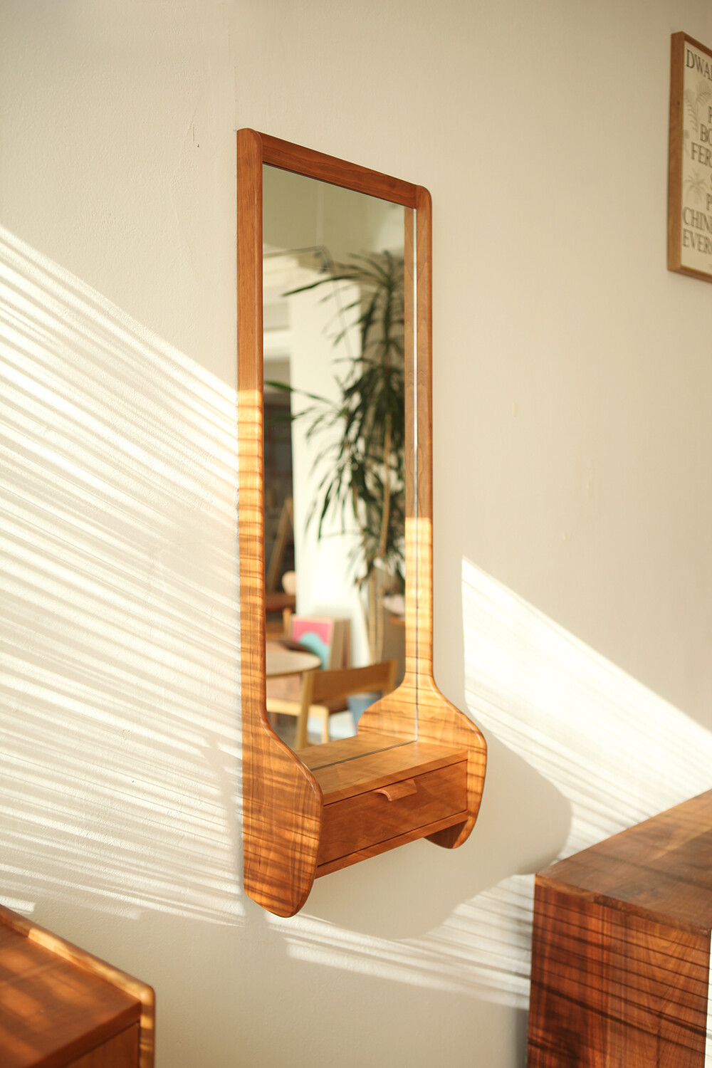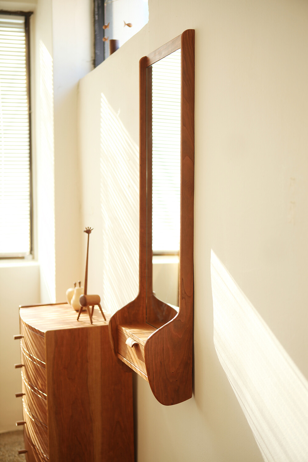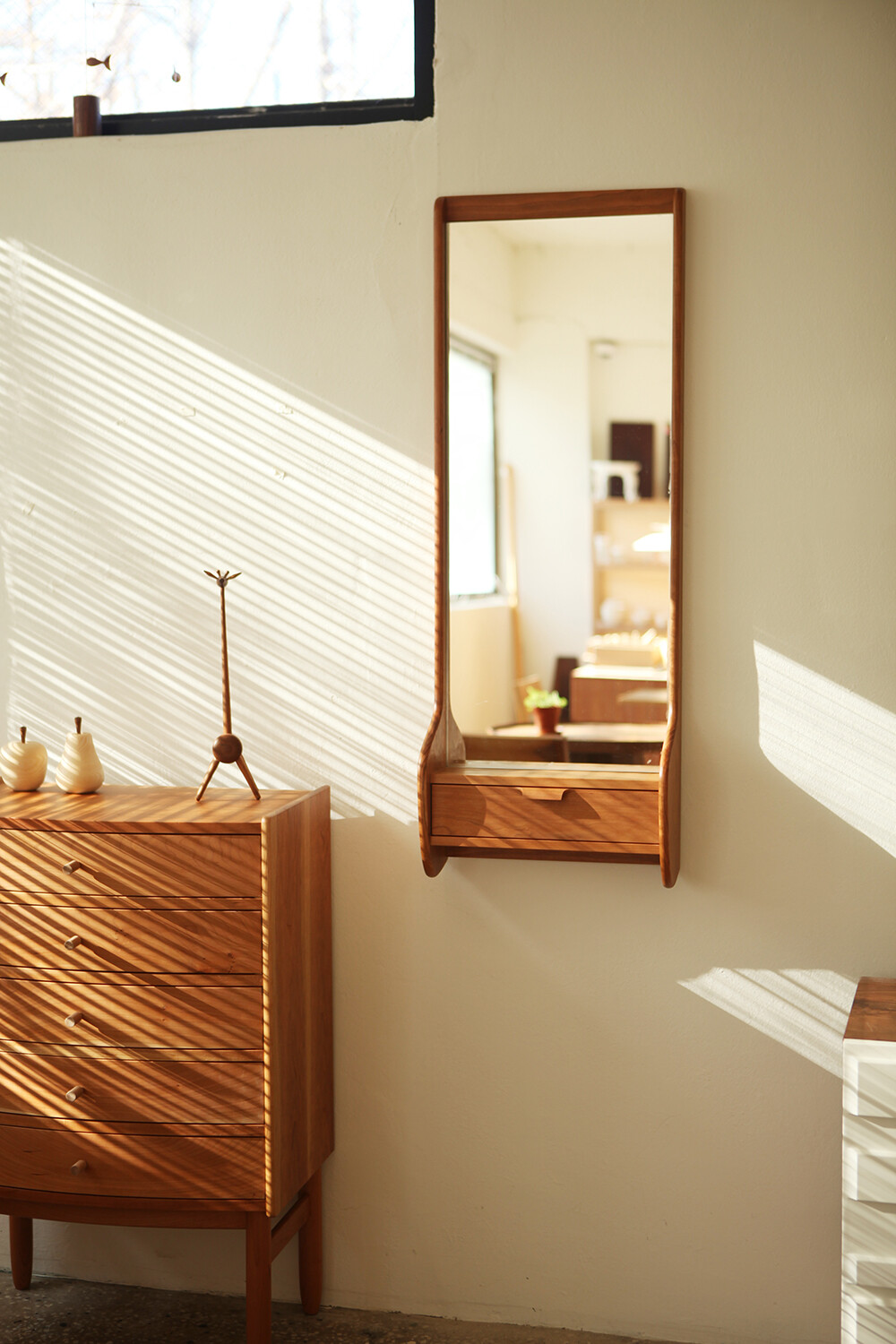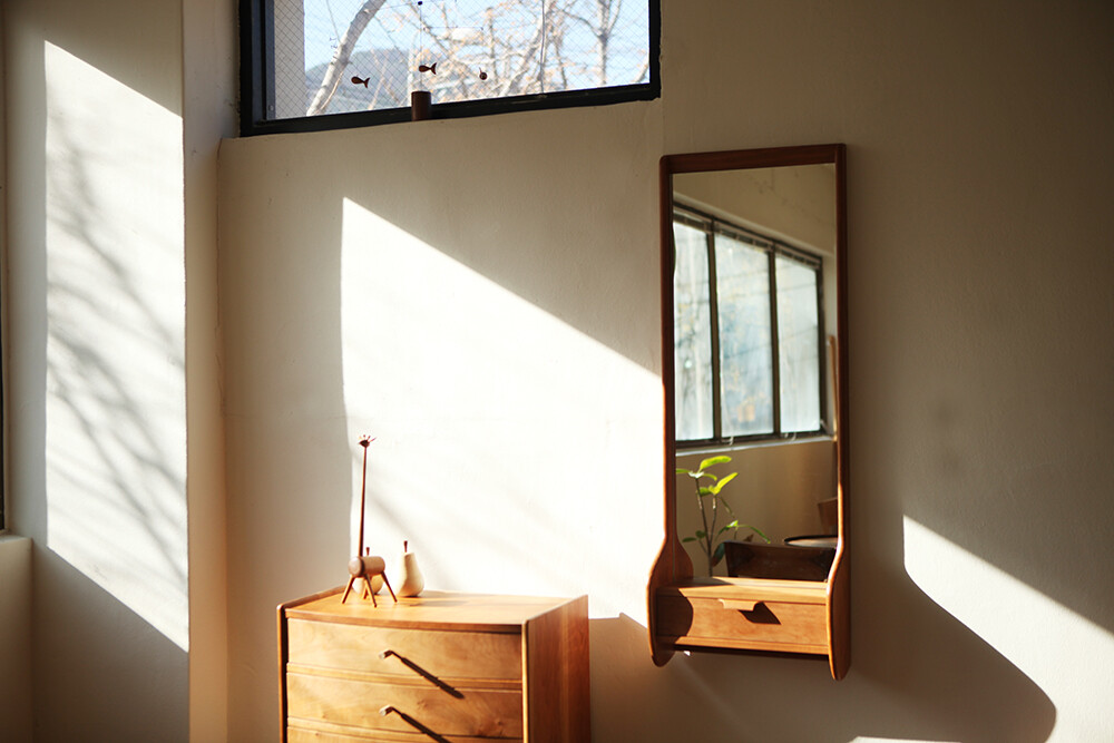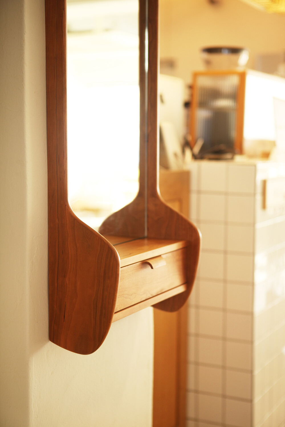 빈티지하면서도 유연한 디자인이 매력적인 벽걸이 화장대입니다.