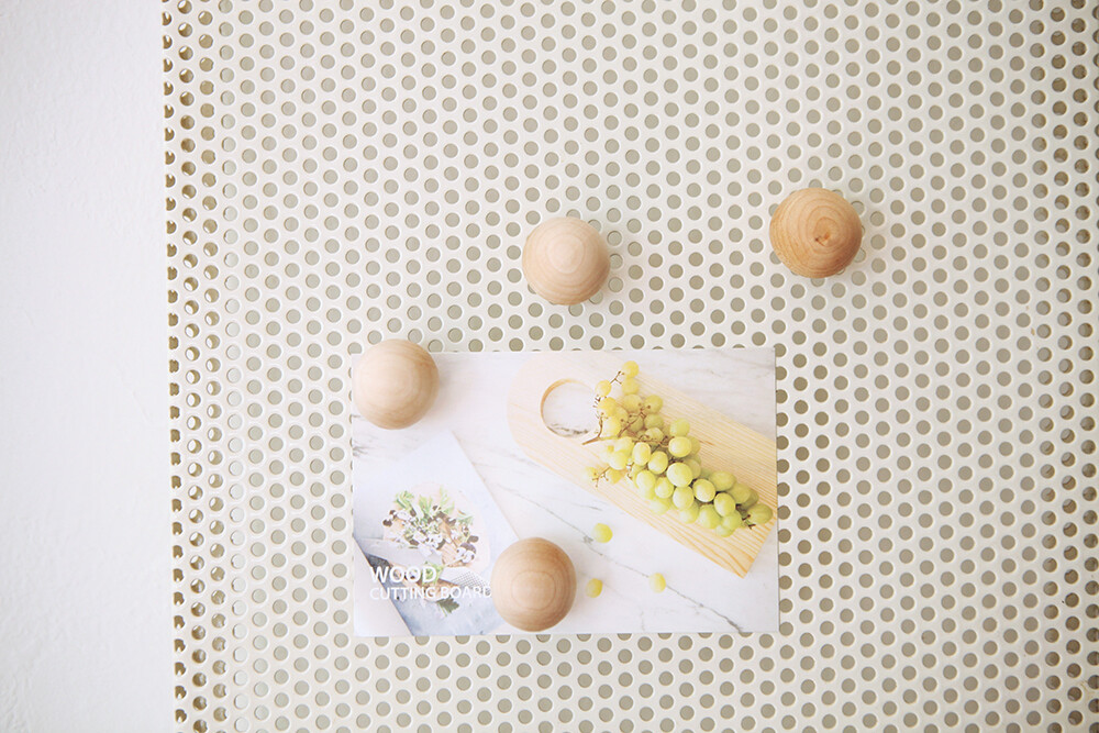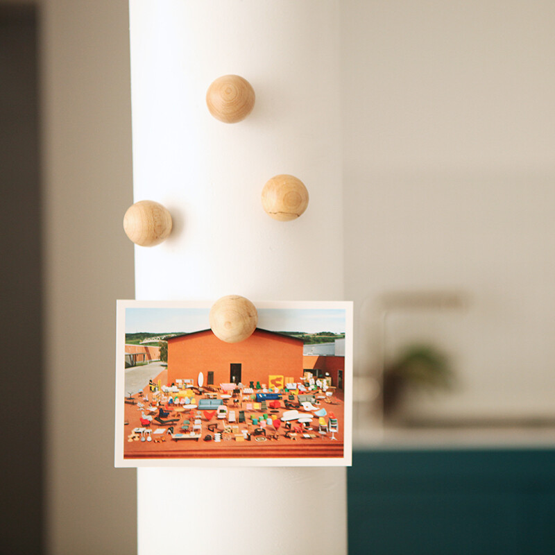 간단한 메모나 사진을 철제, 자성이 있는 벽면 등에 고정시킬 수 있는 우드볼 마그넷입니다.