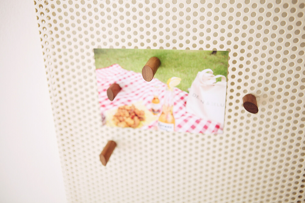 간단한 메모나 사진을 철제, 자성이 있는 벽면 등에 고정시킬 수 있는 우드 마그넷입니다.